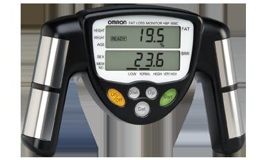 Measurement of body fat composition is the key to long-term exercise success. The Omron hand held body fat analyzer is an affordable and easy way to measure body fat in the privacy of your own home. After inputting the data, a measurement can be started by simply holding the grip electrodes and pressing the START button.